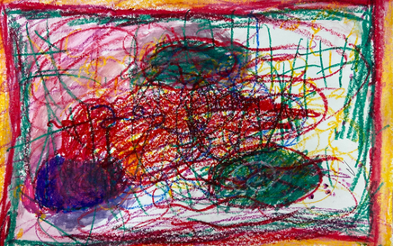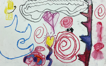 Students focus on each different sense to guide the mark making for their drawing. Starting with sight, students close their eyes and focus on their breathing. Slowly as a class, we take a moment to do some deep breathing. Students use their breathing to glide an oil pastel on their paper.